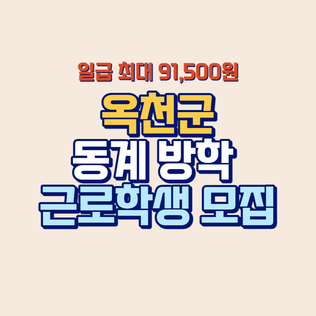 옥천군에서 겨울 방학기간 동안 학생들의 건전한 사회경험 및 학비 마련에 도움을 주기 위해 방학 근로 학생을 모집합니다. 방학 기간 20일 동안만 근로하면 되고 급여는 일당 최대 91,500원입니다. 근무 내용도 군정 사무, 현장보조 및 도서관 자료 정리이기 때문에 군정에 참여해 볼 기회도 얻을 수 있는 좋은 기회가 될 것입니다. 총 46명의 학생에게 기회가 주어진다고 하는데요. 신청 기간이 많이 남지 않았으므로 관심 있는 대학생 분들은 아래 링크 클릭하셔서 신청하시기 바랍니다.